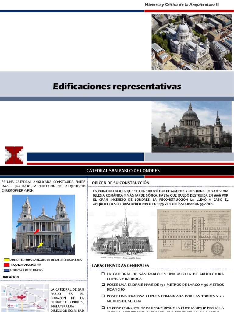 El día 5 de septiembre el incendio ya había calcinado más de 13.000 viviendas y 87 iglesias. Se encuentra en ludgate hill, el punto más alto de la ciudad. Catedral de san pablo autor: La catedral de san pablo (en inglés «saint paul's cathedral») en londres fue construida entre 1676 y 1710, bajo la dirección del arquitecto christopher wren, sobre las ruinas de la antigua catedral medieval de menor envergadura quemada por el gran incendio de 1666. La so dedicación al apóstol san pablo data de la ilesia orixinal alzada nel mesmu llugar, fundada nel añu 604 d.